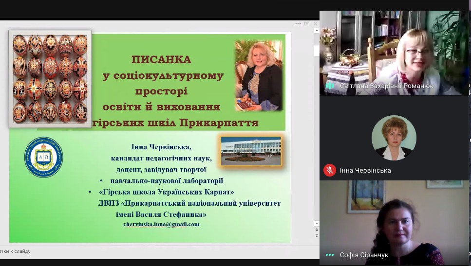 УЧАСТЬ СПІВРОБІТНИКІВ ТВОРЧОЇ НАВЧАЛЬНО-НАУКОВОЇ ЛАБОРАТОРІЇ «ГІРСЬКА ШКОЛА УКРАЇНСЬКИХ КАРПАТ» У МІЖВУЗІВСЬКОМУ ОНЛАЙН-ВЕБІНАРІ «УКРАЇНСЬКА ПИСАНКА В СУЧАСНОМУ ОСВІТНЬОМУ ПРОСТОРІ»