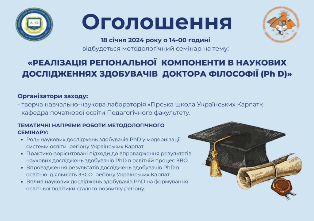 МЕТОДОЛОГІЧИЙ СЕМІНАР ДЛЯ ЗДОБУВАЧІВ ТРЕТЬОГО (ОСВІТНЬО-НАУКОВОГО) РІВНЯ ДОКТОРА ФІЛОСОФІЇ «РЕАЛІЗАЦІЯ РЕГІОНАЛЬНОЇ КОМПОНЕНТИ В НАУКОВИХ ДОСЛІДЖЕННЯХ ЗДОБУВАЧІВ ДОКТОРА ФІЛОСОФІЇ (Ph D)».