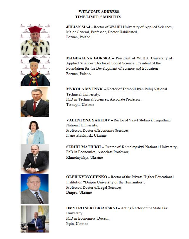 З вітальним словом до учасників наукового форуму звернулися ректори ЗВО, керівники успішних підприємств та міжнародних організацій. По завершенні пленарних доповідей відбулося підведення підсумків конференції та проголошення висновків експертів з Грузії, України та Польщі.
