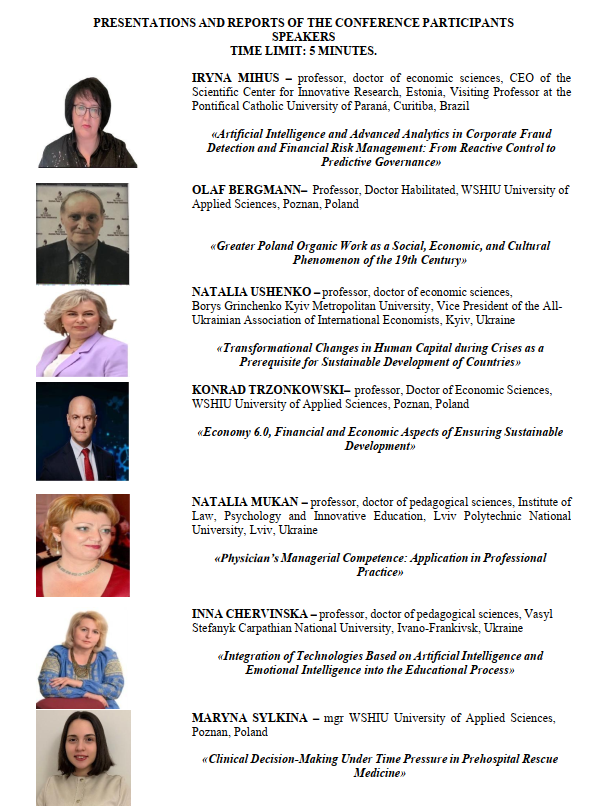 Міждисциплінарний підхід та всебічність проблематики наукових доповідей сприяв інтеграції знань з різних галузей економіки, менеджменту, освіти, медицини, технологій та бізнесу, що складає основу для планування сталого розвитку соціально-економічних та освітніх систем у різних країнах світу.